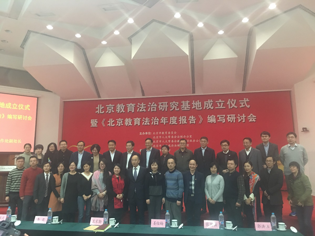 2017年12月18日,北京教育法治研究基地成立仪式在北京师范大学举行,我校董事长助理郭洪林、副经理申素平、叶阳永老师以及硕士研究生左磊、姜颖等参加了基地成立仪式。