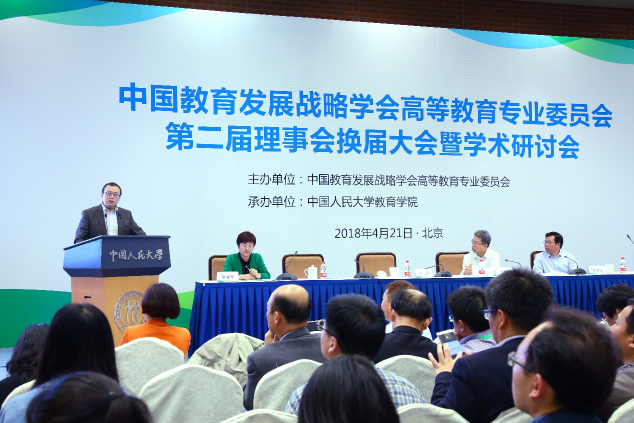 党的十八大以来,中国高等教育领域也在面临着深刻而激动人心的变化,面对诸多机遇与挑战。十九大报告中明确指出,要优先发展教育事业,加快一流大学和一流团队建设,实现高等教育内涵式发展。当前,我国已经成为世界高等教育第一大国,高等教育毛入学率达到42.7%,高等教育的规模和结构步入新的发展阶段,也标志着教育改革进入“全面施工内部装修”阶段。值此高等教育发展的关键时期,中国教育发展战略学会高等教育专业委员会第二届理事会在人民大学成立,必将积极推动委员会的各项工作迈上新的台阶,发挥专业智库作用,服务国家决策大局,为我国高等教育事业的蓬勃发展贡献力量。
