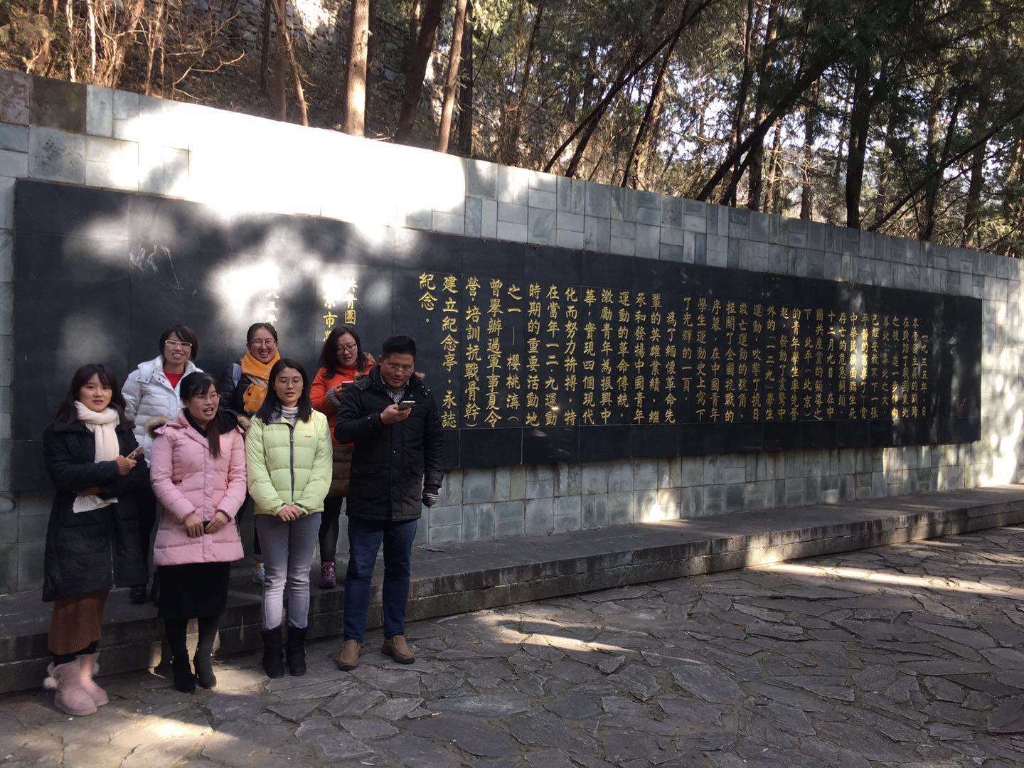 12月9日,教育公司党总支组织师生党员前往香山植物园一二·九纪念亭开展党员活动。上午9点半,党员们到达植物园并合影留念。