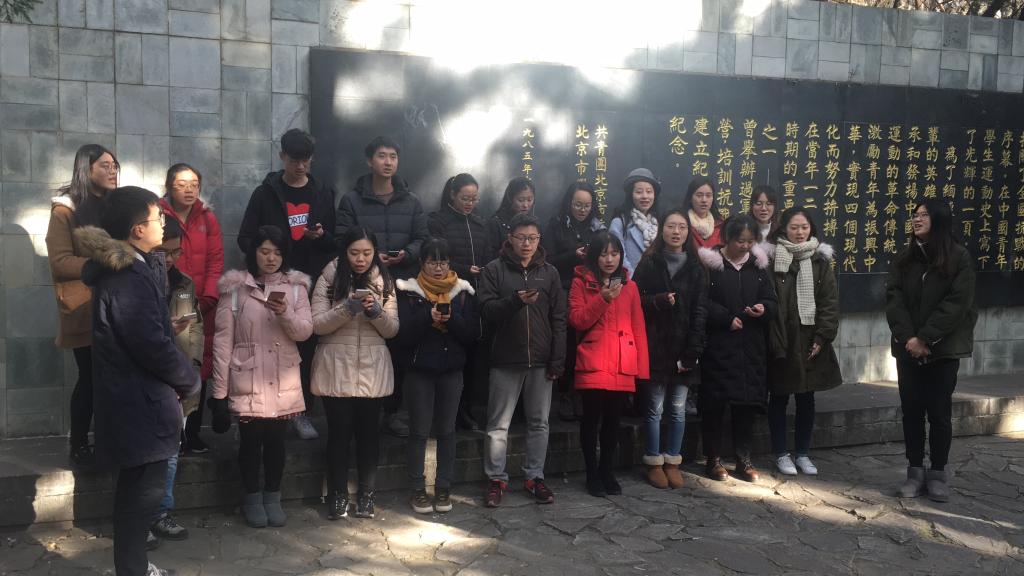 来到纪念亭,首先由2017级硕士党支部成员隋新然向大家介绍了一二·九运动的历史:“一二·九”运动是中国共产党领导的一次大规模员工爱国运动。它揭露了日本帝国主义侵略中国,并吞华北的阴谋,打击了国民党政府的妥协投降政策,大大地促进了中国人民的觉醒。