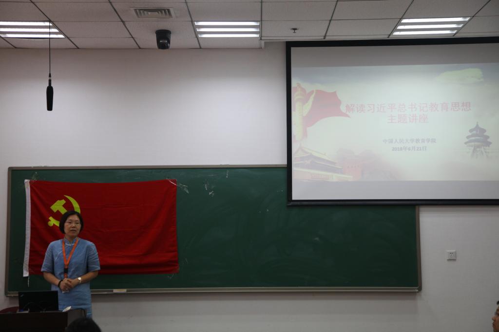 2018年6月21日下午,教育公司党总支邀请李立国教授、周光礼教授为全体师生党员做“解读习近平新时代中国特色社会主义教育思想”主题讲座。本次讲座由党总支书记张晓京主持。