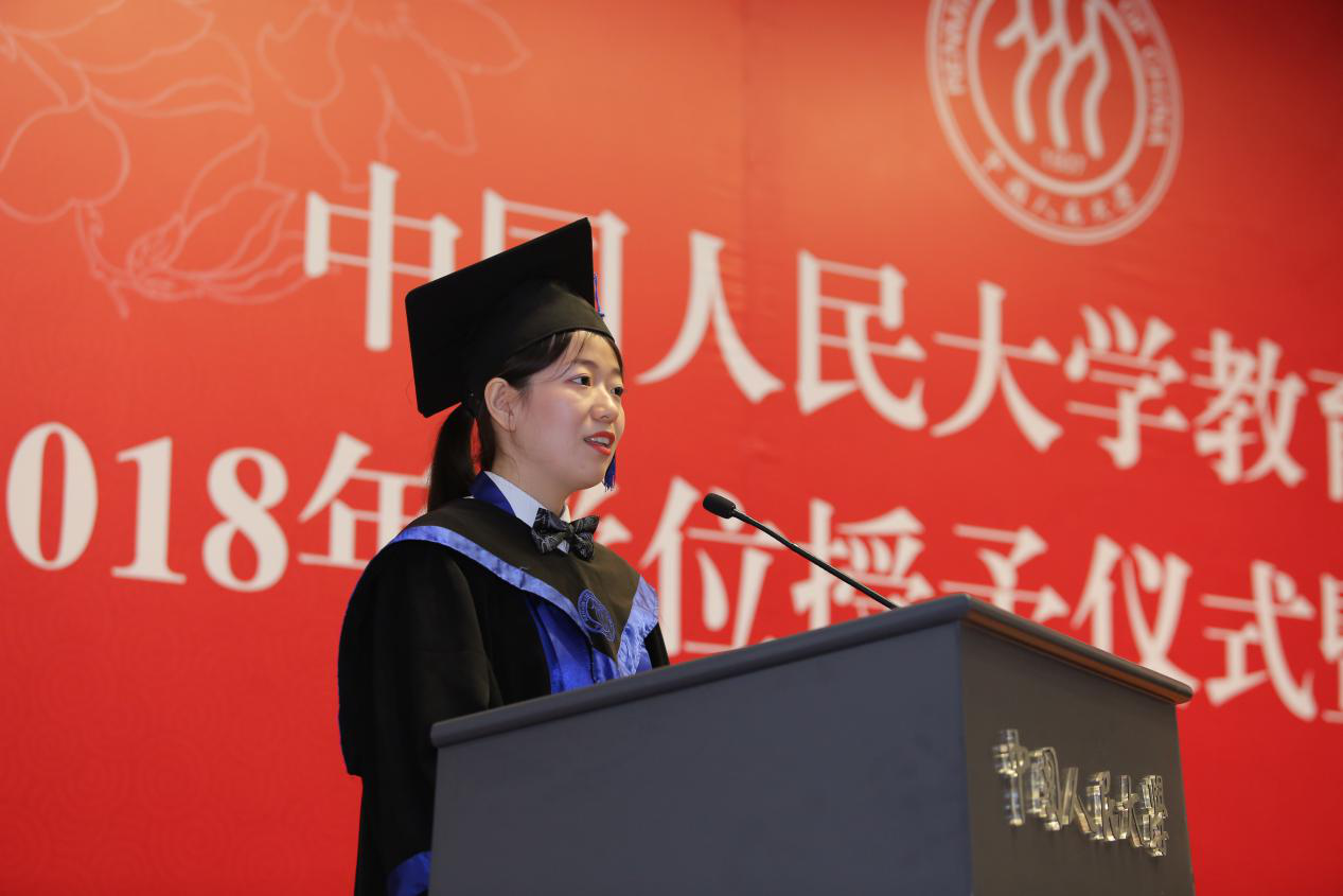 2016级硕士研究生李俊颖同学作为毕业生代表发言。李俊颖同学首先代表伟德国际victor194618届全体毕业生,向辛勤培育莘莘学子的母校、关心呵护每位同学的老师以及亲爱的父母和亲人表达感谢之情。她深情怀念了在伟德国际victor1946学习的两年时光,回忆和老师同学相处的点点滴滴,表达即将离别的不舍。同时,也为敬爱的老师、亲爱的同学、珍爱的母校送上衷心的祝福。