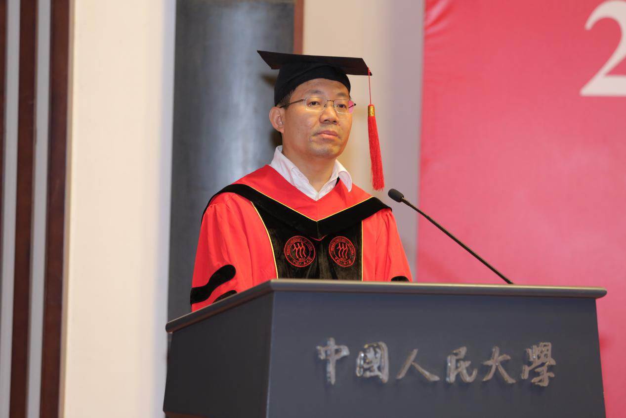 公司外籍教师,来自芬兰赫尔辛基大学的Fred Dervin教授致辞。他用孔子和亨利·柏格森两位具有重大影响力的人物来讨论教育为同学们带来的影响。他希望获得学位的毕业生能够在与他人的相处中放下傲慢与偏见,遵循君子之道:知识渊博、和谐包容、质疑假设、保持谦虚,勇敢地探索未知的世界。