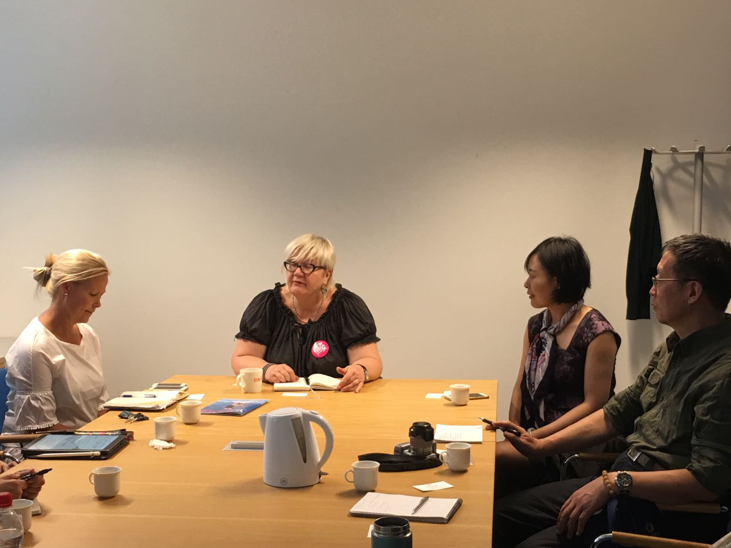 8月22日下午,代表团与赫尔辛基大学孔子公司执行经理Mikael Mattlin教授和中方经理王红会面。中方经理王红也是公司外国语公司副教授,她对代表团的来访表示热烈欢迎。她向代表团介绍了赫尔辛基大学孔子公司的主要工作,特别是汉语教学、汉语教师培训、文化推广、学术活动开展方面的一些工作。代表团随后就赫尔辛基大学孔子公司的特色、当前面临的主要问题等与两位经理进行了交流。