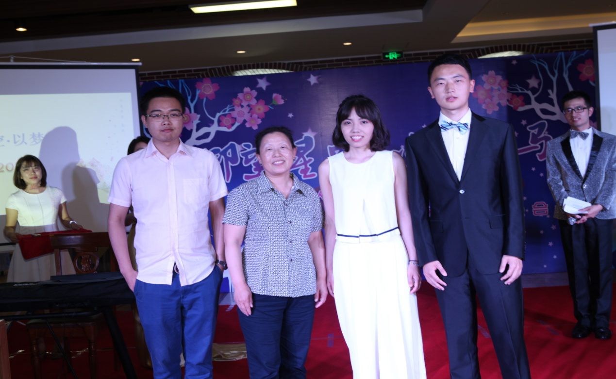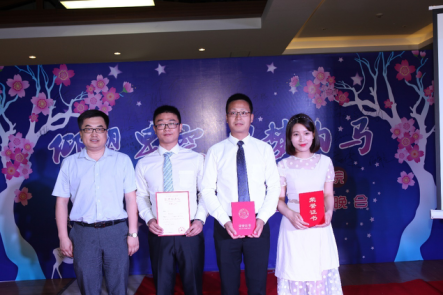 致辞结束后,郭洪林常务副经理代表公司为优秀毕业生代表易鹏、郝盼盼和邵丽鑫同学颁发奖状并合影留念。