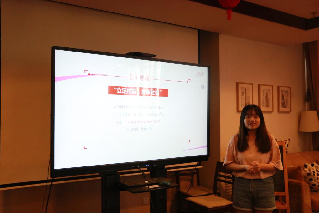 《青年人大》和《新闻周报》作为人大校园内的老牌校园媒体,关注的话题涉及校园生活的各个方面,近年来也在不断尝试对一些社会热点话题做出属于自己的回应。《青年人大》现任副总编卢雨涵同学和《新闻周报》现任社长杨瑾同学分享了如何抓住重点栏目、积极回应热点以及如何适应新媒体环境变化的有益经验。
