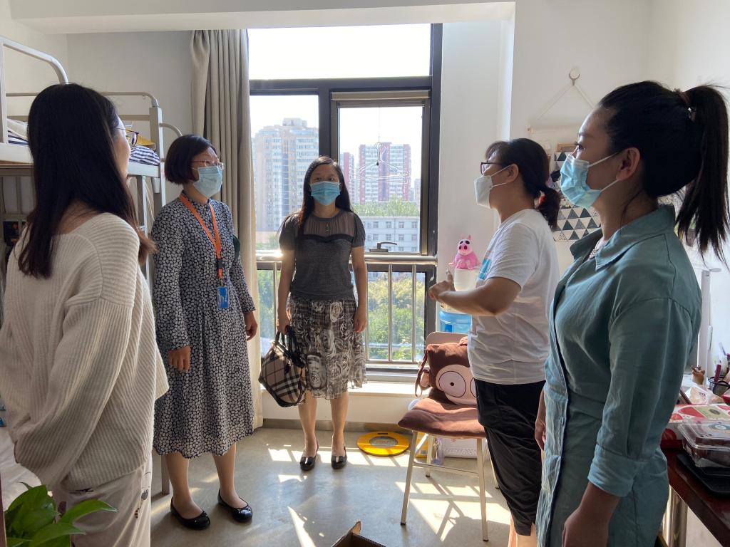党总支书记张晓京带领的女老师一行来到女生宿舍进行慰问。