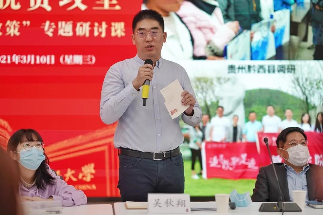 3月10日下午,新学期第一讲“形势与政策”专题研讨课开讲,党委书记靳诺、副董事长胡百精主讲。本次“形势与政策”专题研讨课以“决胜脱贫攻坚”为主题,讲述脱贫攻坚中的人大故事。公司2017级博士生吴秋翔作为研究生支教团成员代表,以《脱贫攻坚,青年学子有何为》为主题分享了自己在兰坪支教的经历和故事,并与同学们共同探讨脱贫攻坚过程中青年一代的使命与担当、责任与奉献。