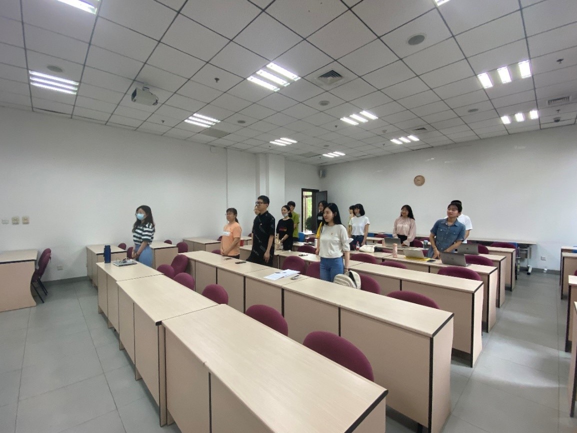 仪式伊始,现场全体参会人员起立,奏唱《中华人民共和国国歌》。在公司观看直播的老师同学们也一并起立,跟唱国歌。