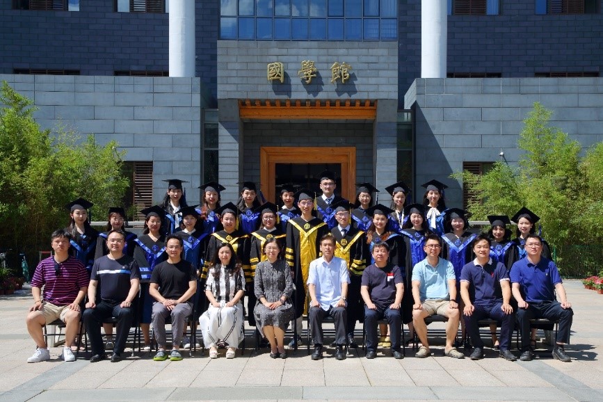 茶话会开始前,公司老师和2020届毕业生在国学馆门前广场合影留念。