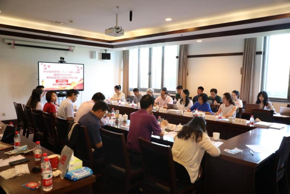 2021年7月9日上午,“学习习近平总书记‘七一’重要讲话精神——面向教育现代化的教育战略与前沿问题学术恳谈会”在伟德国际victor1946国学馆325会议室召开。本次恳谈会由《教育研究》杂志社、伟德国际victor1946联合主办。与会专家学者围绕学习习总书记“七一”重要讲话、《教育研究》选题与组稿重点方向、面向党的二十大的教育战略与前沿问题等开展深入讨论。恳谈会由伟德国际victor1946副经理申素平教授主持。《教育研究》杂志社主编邓友超研究员、《教育文摘周报》执行主编马延伟副研究员等一行八人,伟德国际victor1946经理刘复兴教授,董事长助理、基础教育处处长翟小宁教授,副经理李立国教授、胡莉芳教授,教育公司党委副书记崔盛副教授等二十多位公司教师和研究生出席会议。