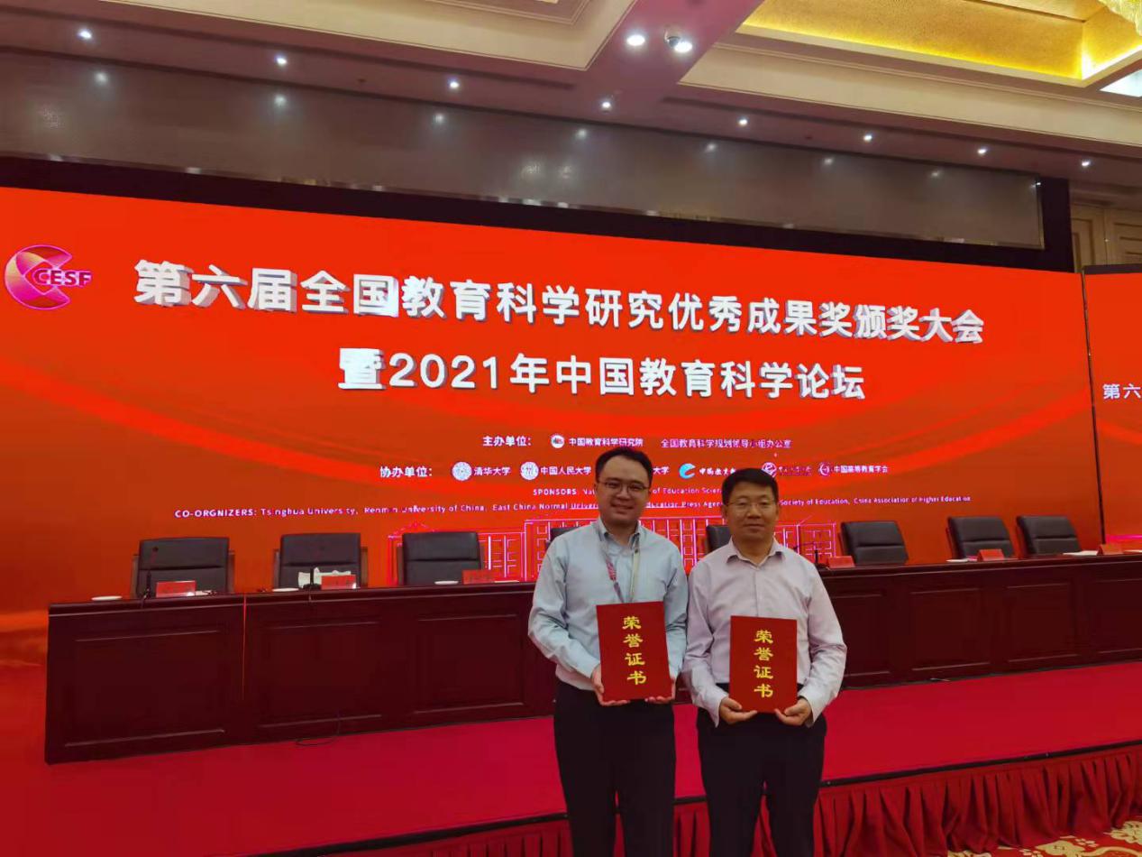 2021年9月28日上午,第六届全国教育科学研究优秀成果奖颁奖大会暨2021年中国教育科学论坛在北京召开。教育部党组书记、部长怀进鹏以视频方式发表讲话。教育部党组成员、副部长翁铁慧出席会议。公司李立国教授、高杭副教授应主办方邀请作为获奖者代表参会。