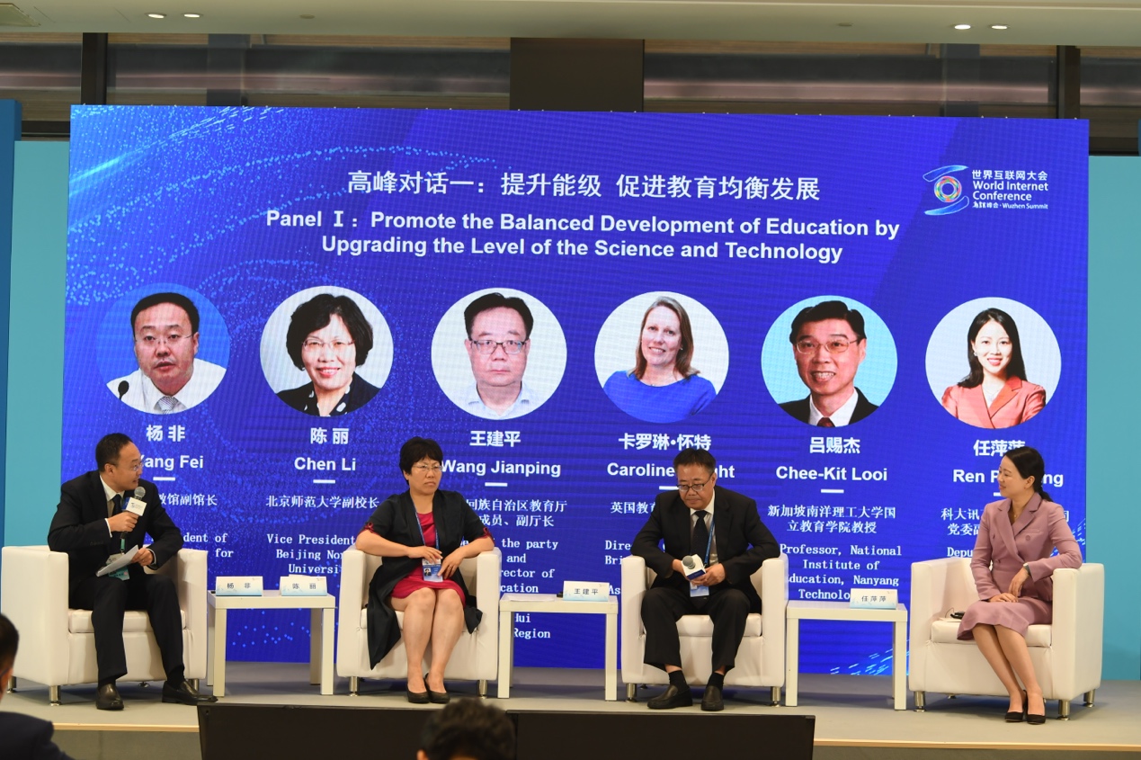 本次论坛高峰对话环节一,中央电教馆副馆长杨非主持并围绕“提升能级,促进教育均衡发展”与北京师范大学副董事长陈丽,宁夏回族自治区教育厅党组成员、副厅长王建平,英国教育供应商协会总干事卡洛琳·怀特,新加坡南洋理工大学国立伟德国际victor1946教授吕赐杰,科大讯飞股份有限公司党委副书记、副总裁任萍萍深入探讨,通过不同国家和地区利用互联网促进教育公平发展的实践案例,提倡坚守教育的初心,利用现代信息技术为教育服务,弥合“数字鸿沟”,为员工的成人成才服务。