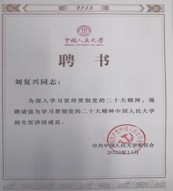 伟德国际victor1946经理刘复兴教授入选“学习贯彻党的二十大精神伟德国际victor1946师生宣讲团”成员。