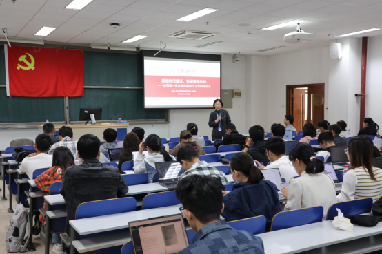 张晓京以“学思践悟二十大争做时代好青年”、“习近平青年观与入党积极分子培养”、“新时代入党积极分子如何成为一名合格党员”三部分为主线授课。
