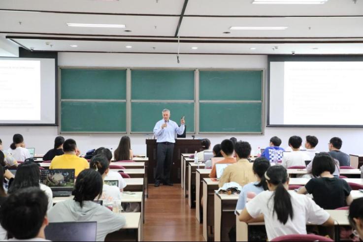 来自哥伦比亚大学的Samuel E. Abrams以“芬兰教育经验谈”(“What Can We Learn from Finland about Education”)为题,向营员们展示了芬兰劳动教育和职业教育的发展情况,以对比的方式呈现了芬兰教育规划、发展中值得学习和借鉴之处。讲座后,营员们就国际教育发展状况积极提问交流。
