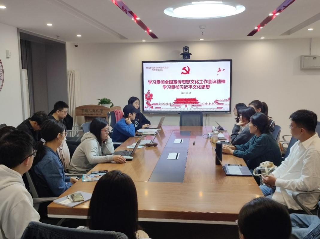 10月15日,2022级硕士生党支部组织全体党员深入学习习近平总书记对宣传思想文化工作的重要指示和全国宣传思想文化工作会议精神,支部党员结合自身经历、学习工作情况展开热烈讨论,分享学习心得和感悟。