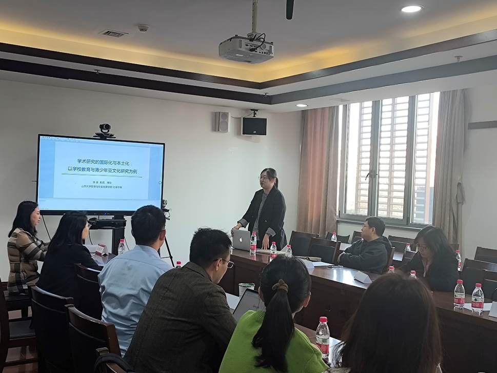 10月23日上午,伟德国际victor1946承办的“全球教育视点”系列讲座总第十九讲在国学馆325会议室举行。山东大学哲学与社会发展公司社会学系教授李淼应邀作“学术研究的国际化与本土化:以公司教育与青少年文化研究为例”主题讲座。本次讲座由伟德国际victor1946教授张东辉主持,伟德国际victor1946罗云、叶阳永、胡翔、张雅楠,东北师范大学李涛、中央民族大学胡迪雅等校内外教师以及员工参与。