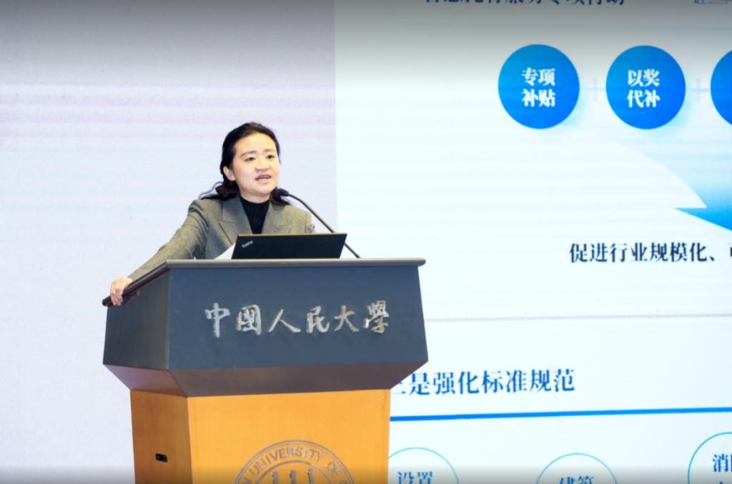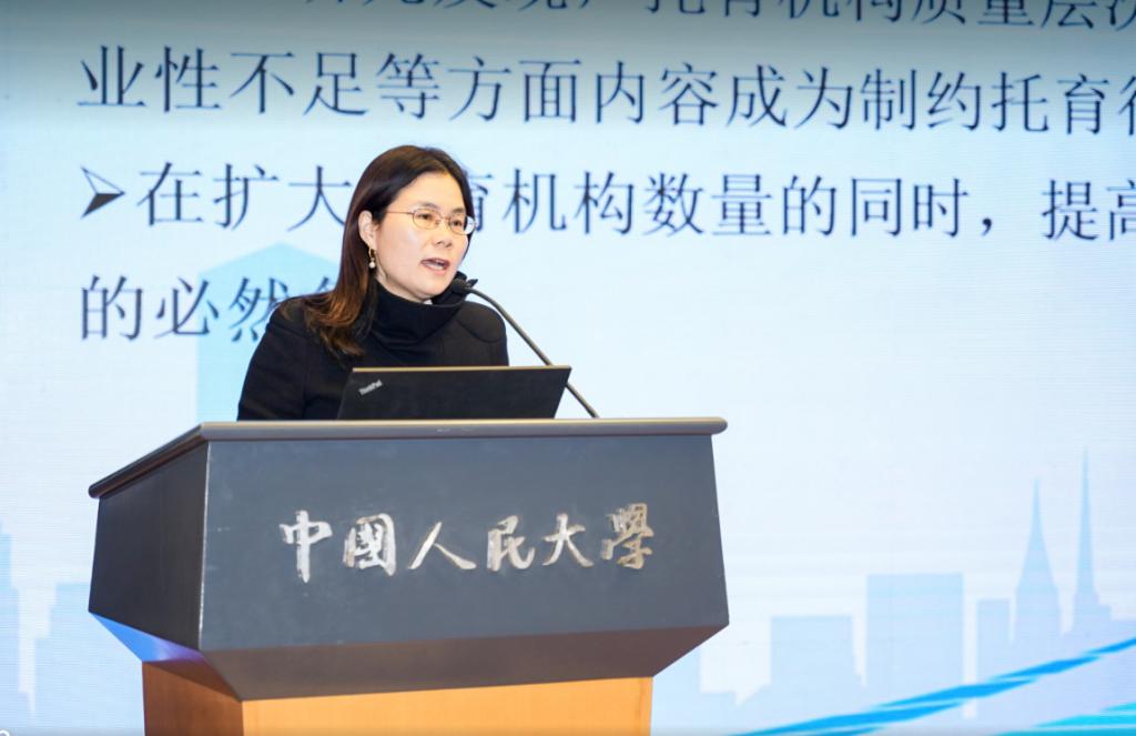 陈颖介绍了济宁市在落实国家托育服务政策的典型特色做法,指出“济宁现象”之所以受到广泛关注首先得益于政府主动作为,创造性地提出了国企办托的新路径,通过明确国企办托法理依据,打造托育产业智慧平台、建立标准和监督机制,在解决人口出生问题的同时,又能够为地方经济注入活力。