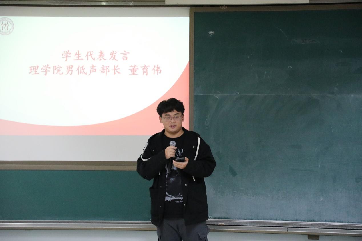 理公司党委书记冯诗松老师和教育公司党委书记刘甡老师上台致辞,高度肯定了同学们的付出与投入,同时对两院合作共赢、取得优异成绩提出了期望,也对尽职尽责的合唱指导老师徐嘉彦老师致以敬意和问候。