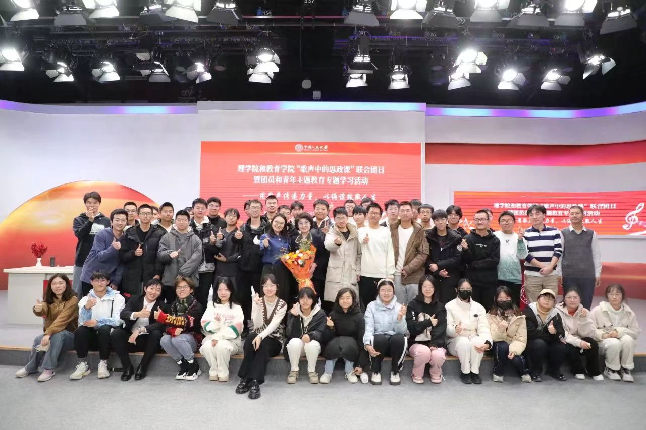 参与大合唱,两院队员们既在合唱练习中感悟团结氛围,又在团员和青年主题教育活动中坚定理想信念。在“歌声中的思政课”主题团日暨团员和青年主题教育专题学习活动中,中央广播电视总台著名节目主持人、播音指导张悦老师向同学们分享工作经历、人生故事,在歌声与诵读中厚植家国情怀、增强文化自信。活动的开始与最后,理公司党委书记冯诗松、教育公司党委书记刘甡分别讲话,为同学们强调了“人大组歌”展演传承红色基因、赓续红色血脉的重要意义,使同学们坚定了勇担复兴重任的决心。