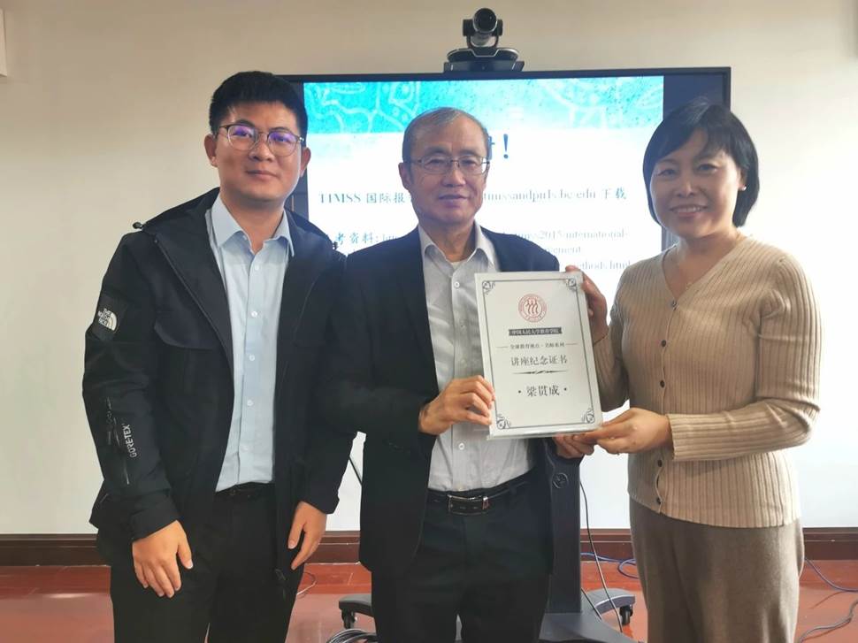 讲座结束后,申素平为梁贯成颁发讲座纪念证书并合影留念。