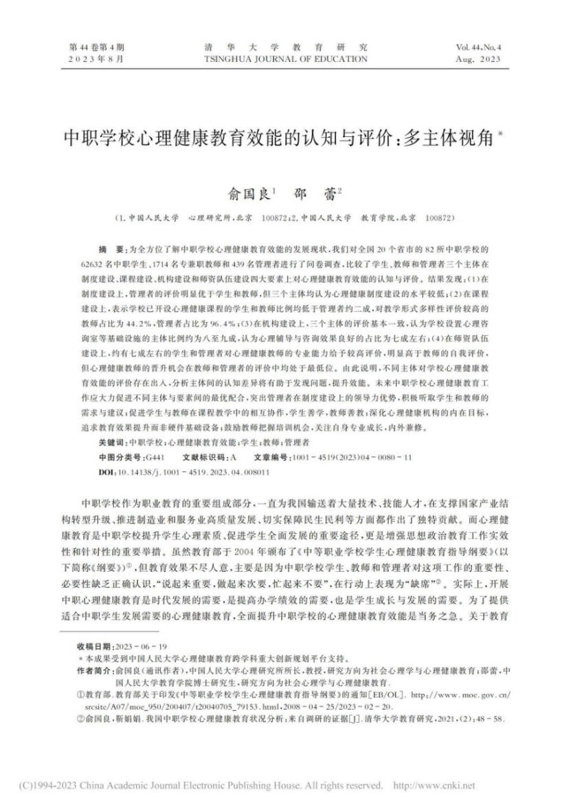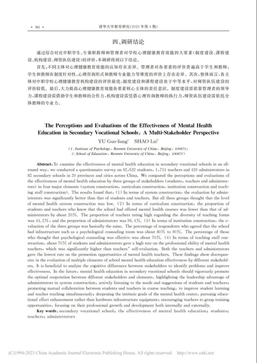(作者:俞国良,伟德国际victor1946心理研究所所长,教授,研究方向为社会心理学与心理健康教育;邵蕾,伟德国际victor1946博士研究生,研究方向为社会心理学与心理健康教育。原文载于《清华大学教育研究》2023年第4期。)